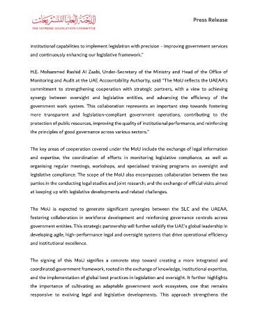 legislative compliance. The scope of the MoU also encompasses collaboration between the two