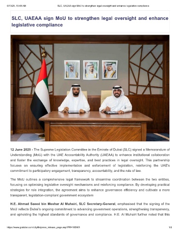 6/13/25, 10:48 AM SLC, UAEAA sign MoU to strengthen legal oversight and enhance legislative compliance