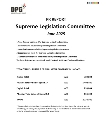 TOTAL VALUE – ARABIC & ENGLISH MEDIA COVERAGE IN UAE AED.