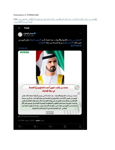 Publication: X- FORSAN UAE Link: ا ً رﯾزو ﻎﯾﺎﺻﻟا_دﻣﺣأ# خﻷا نﯾﯾﻌﺗ نﻋ موﯾﻟا نﻠﻌﻧ ،ﺔﻟودﻟا_سﯾﺋر# ﻲﺧأ دﺎﻣﺗﻋا دﻌﺑ ..تاوﺧﻷاو ةوﺧﻹا :دﺷار_نﺑ_دﻣﺣﻣ# تارﺎﻣﻹا# ﺔﻟود ﻲﻓ ﺔﺣﺻﻠﻟ
