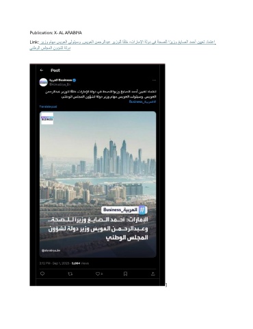 Publication: X- AL ARABIYA Link: رﯾزو مﺎﮭﻣ سﯾوﻌﻟا ﻰﻟوﺗﯾﺳو .سﯾوﻌﻟا نﻣﺣرﻟادﺑﻋ رﯾزوﻠﻟ ﺎًﻔﻠﺧ ،تارﺎﻣﻹا ﺔﻟود ﻲﻓ ﺔﺣﺻﻠﻟ ا ً رﯾزو ﻎﯾﺎﺻﻟا دﻣﺣأ نﯾﯾﻌﺗ دﺎﻣﺗﻋا ﻲﻧطوﻟا سﻠﺟﻣﻟا نوؤﺷﻟ ﺔﻟود ]