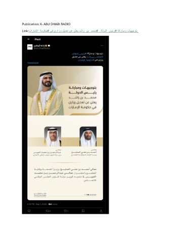 Publication: X- ABU DHABI RADIO Link: تارﺎﻣﻹا_ﺔﻣوﻛﺣ# ﻲﻓ يرازو لﯾدﻌﺗ نﻋ نﻠﻌﯾ دﺷار_نﺑ_دﻣﺣﻣ# ..ﺔﻟودﻟا_سﯾﺋر# ﺔﻛرﺎﺑﻣو تﺎﮭﯾﺟوﺗﺑ