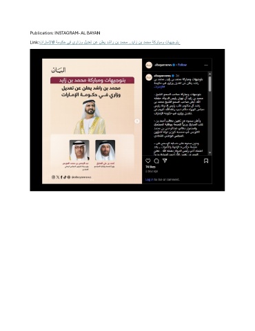 Publication: INSTAGRAM- AL BAYAN Link: تارﺎﻣﻹا# ﺔﻣوﻛﺣ ﻲﻓ يرازو لﯾدﻌﺗ نﻋ نﻠﻌﯾ دﺷار نﺑ دﻣﺣﻣ ..دﯾاز نﺑ دﻣﺣﻣ ﺔﻛرﺎﺑﻣو تﺎﮭﯾﺟوﺗﺑ