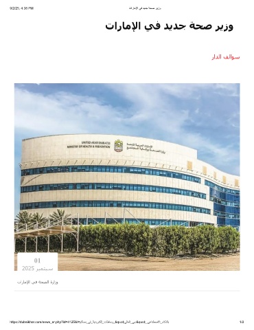 9/2/25, 4:38 PM تارﺎﻣﻹا ﻲﻓ دﯾدﺟ ﺔﺣﺻ رﯾزو تارﺎﻣﻹا ﻲﻓ ﺪﻳﺪﺟ ﺔﺤﺻ ﺮﻳزو راﺪﻟا ﻒﻟاﻮﺳ 01 2025 ﺮﺒﻤﺘﺒﺳ تارﺎﻣﻹا ﻲﻓ ﺔﺤﺼﻟا ةرازو https://dubaikhor.com/news_ar.php?id=4125&t=مﻛﺎﺣﻣ_ﻲﻓ_ﺔﯾﻧورﺗﻛﻟإ_تﺎطﺎﺳو_"ﻲﻟﺎﻣﻟا_ﻲﺑد"_ﻲﻋﺎﻧطﺻﻻا_ءﺎﻛذﻟﺎﺑ 1/2