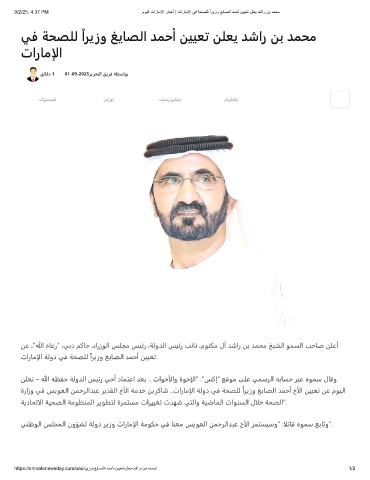 9/2/25, 4:37 PM موﯾﻟا تارﺎﻣﻹا رﺎﺑﺧأ | تارﺎﻣﻹا ﻲﻓ ﺔﺣﺻﻠﻟ ًارﯾزو ﻎﯾﺎﺻﻟا دﻣﺣأ نﯾﯾﻌﺗ نﻠﻌﯾ دﺷار نﺑ دﻣﺣﻣ