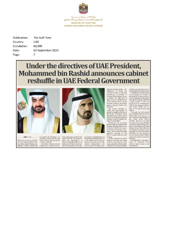 Publication: The Gulf Time Country: UAE Circulation: 60,000 Date: 02 September 2025 Page: 2