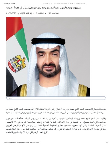 9/2/25, 4:30 PM تارﺎﻣﻹا ﺔﻣوﻛﺣ ﻲﻓ يرازو لﯾدﻌﺗ نﻋ نﻠﻌﯾ دﺷار نﺑ دﻣﺣﻣ ﺔﻟودﻟا سﯾﺋر ﺔﻛرﺎﺑﻣو تﺎﮭﯾﺟوﺗﺑ