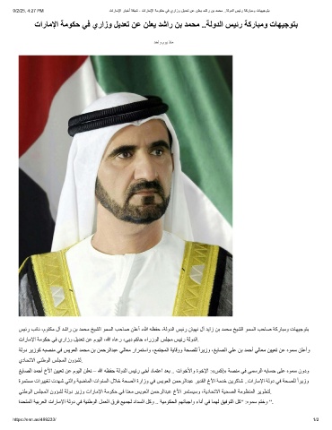 9/2/25, 4:27 PM تارﺎﻣﻹا رﺎﺑﺧأ ﺔﻛﺑﺷ - تارﺎﻣﻹا ﺔﻣوﻛﺣ ﻲﻓ يرازو لﯾدﻌﺗ نﻋ نﻠﻌﯾ دﺷار نﺑ دﻣﺣﻣ ..ﺔﻟودﻟا سﯾﺋر ﺔﻛرﺎﺑﻣو تﺎﮭﯾﺟوﺗﺑ