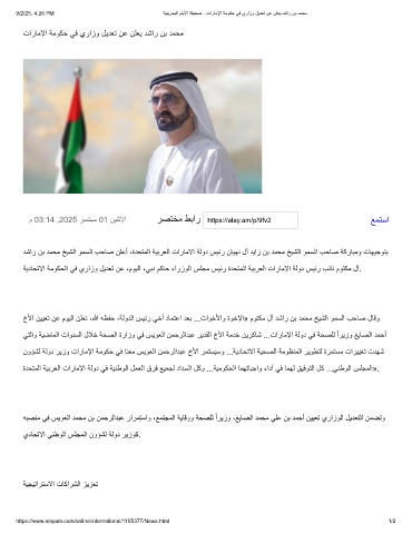 9/2/25, 4:26 PM ﺔﯾﻧﯾرﺣﺑﻟا مﺎﯾﻷا ﺔﻔﯾﺣﺻ - تارﺎﻣﻹا ﺔﻣوﻛﺣ ﻲﻓ يرازو لﯾدﻌﺗ نﻋ نﻠﻌﯾ دﺷار نﺑ دﻣﺣﻣ
