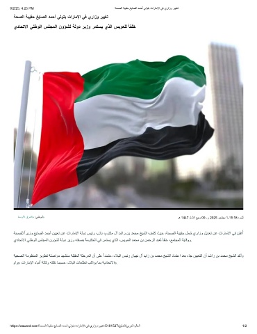 9/2/25, 4:25 PM ﺔﺣﺻﻟا ﺔﺑﯾﻘﺣ ﻎﯾﺎﺻﻟا دﻣﺣأ ﻲﻟوﺗﺑ تارﺎﻣﻹا ﻲﻓ يرازو رﯾﯾﻐﺗ