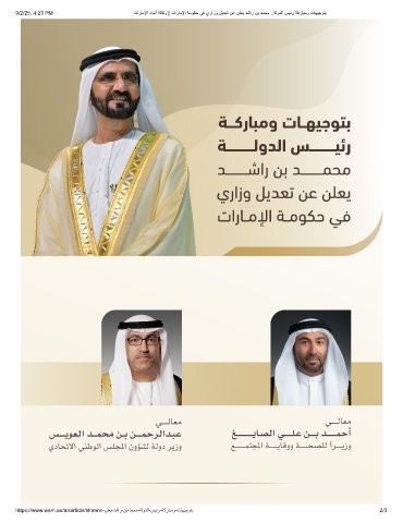 9/2/25, 4:23 PM تارﺎﻣﻹا ءﺎﺑﻧأ ﺔﻟﺎﻛو | تارﺎﻣﻹا ﺔﻣوﻛﺣ ﻲﻓ يرازو لﯾدﻌﺗ نﻋ نﻠﻌﯾ دﺷار نﺑ دﻣﺣﻣ ..ﺔﻟودﻟا سﯾﺋر ﺔﻛرﺎﺑﻣو تﺎﮭﯾﺟوﺗﺑ https://www.wam.ae/ar/article/blhmrvl-نﻠﻌﯾ-دﺷار-نﺑ-دﻣﺣﻣ-ﺔﻟودﻟا-سﯾﺋر-ﺔﻛرﺎﺑﻣو-تﺎﮭﯾﺟوﺗﺑ 2/3