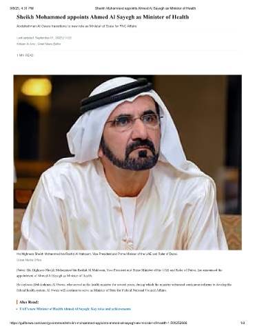 9/8/25, 4:31 PM Sheikh Mohammed appoints Ahmed Al Sayegh as Minister of Health