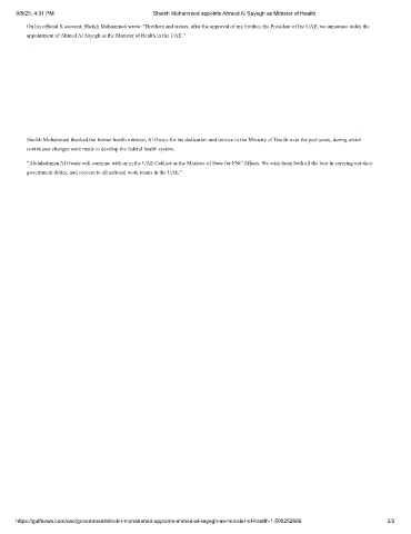 9/8/25, 4:31 PM Sheikh Mohammed appoints Ahmed Al Sayegh as Minister of Health