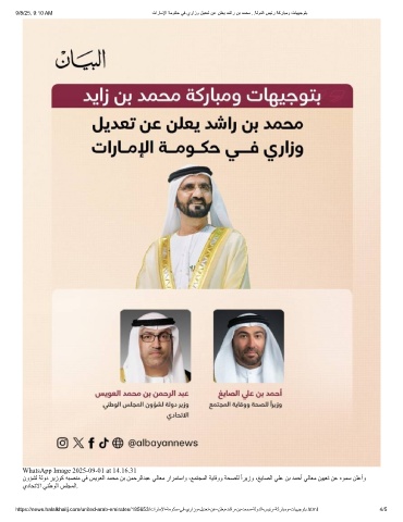 9/8/25, 9:10 AM تارﺎﻣﻹا ﺔﻣوﻛﺣ ﻲﻓ يرازو لﯾدﻌﺗ نﻋ نﻠﻌﯾ دﺷار نﺑ دﻣﺣﻣ ..ﺔﻟودﻟا سﯾﺋر ﺔﻛرﺎﺑﻣو تﺎﮭﯾﺟوﺗﺑ