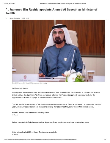 https://www.gulftoday.ae/news/2025/09/01/mohammed-bin-rashid-appoints-ahmed-al-sayegh-as-minister-of-health 1/2