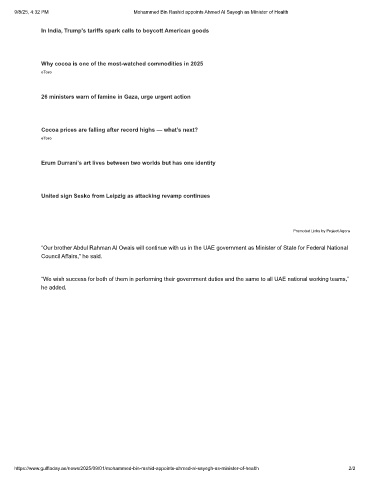 9/8/25, 4:32 PM Mohammed Bin Rashid appoints Ahmed Al Sayegh as Minister of Health