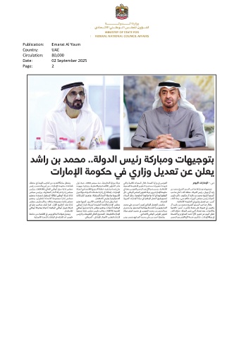 Publication: Emarat Al Youm Country: UAE Circulation: 80,000 Date: 02 September 2025 Page: 2