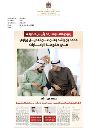 Publication: Al Etihad Country: UAE Circulation: 109,640 Date: 02 September 2025 Page: 3