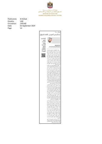 Publication: Al Etihad Country: UAE Circulation: 109,640 Date: 03 September 2024 Page: 14