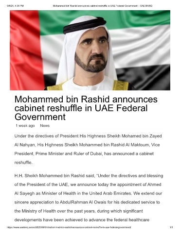 https://www.uaebarq.ae/en/2025/09/01/mohammed-bin-rashid-announces-cabinet-reshuffle-in-uae-federal-government/ 1/3