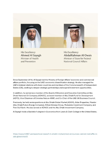 (ADFD), Vice Chairman of Emirates Nature–WWF, and Co-Chair of the UAE-UK Business Council.