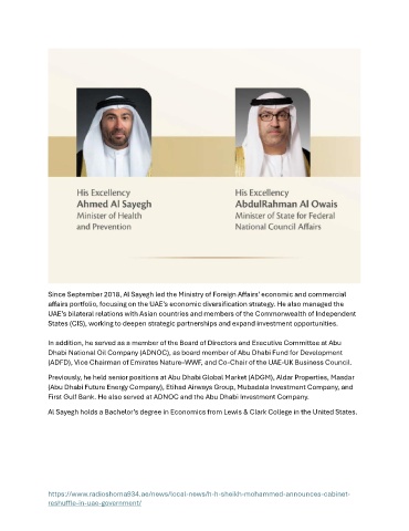 (ADFD), Vice Chairman of Emirates Nature–WWF, and Co-Chair of the UAE-UK Business Council.