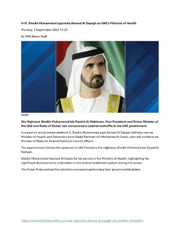 H.H. Sheikh Mohammed appoints Ahmed Al Sayegh as UAE's Minister of Health