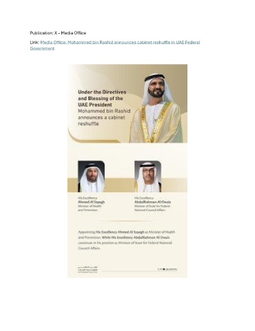 Publication: X – Media Office Link: Media Office: Mohammed bin Rashid announces cabinet reshuffle in UAE Federal Government