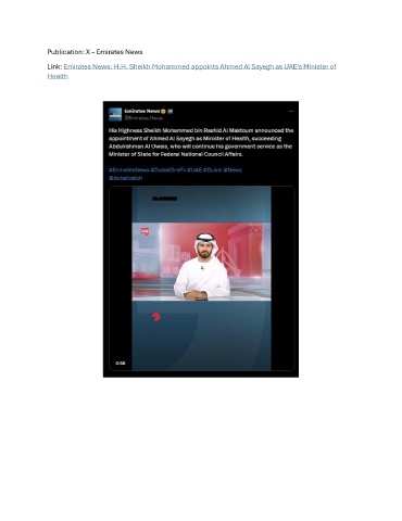 Publication: X – Emirates News Link: Emirates News: H.H. Sheikh Mohammed appoints Ahmed Al Sayegh as UAE's Minister of Health