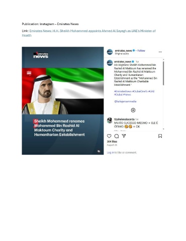Publication: Instagram – Emirates News Link: Emirates News: H.H. Sheikh Mohammed appoints Ahmed Al Sayegh as UAE's Minister of Health