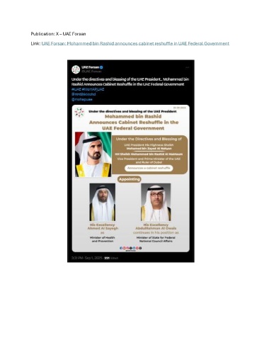 Publication: X – UAE Forsan Link: UAE Forsan: Mohammed bin Rashid announces cabinet reshuffle in UAE Federal Government