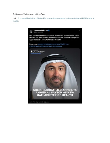 Publication: X – Economy Middle East Link: Economy Middle East: Sheikh Mohammed announces appointment of new UAE Minister of Health