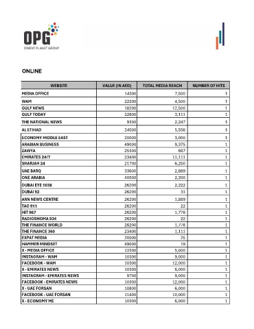 WEBSITE VALUE (IN AED) TOTAL MEDIA REACH NUMBER OF HITS