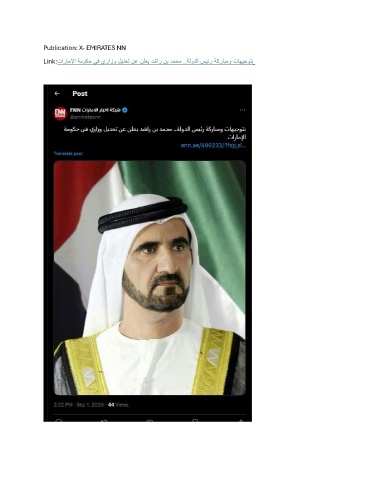 Publication: X- EMIRATES NN Link: تارﺎﻣﻹا ﺔﻣوﻛﺣ ﻲﻓ يرازو لﯾدﻌﺗ نﻋ نﻠﻌﯾ دﺷار نﺑ دﻣﺣﻣ ..ﺔﻟودﻟا سﯾﺋر ﺔﻛرﺎﺑﻣو تﺎﮭﯾﺟوﺗﺑ
