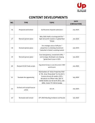 CONTENT DEVELOPMENTS