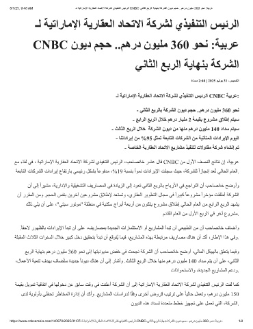 8/1/25, 9:48 AM ـﻟ ﺔﯾﺗارﺎﻣﻹا ﺔﯾرﺎﻘﻌﻟا دﺎﺣﺗﻻا ﺔﻛرﺷﻟ يذﯾﻔﻧﺗﻟا سﯾﺋرﻟا CNBC ﻲﻧﺎﺛﻟا ﻊﺑرﻟا ﺔﯾﺎﮭﻧﺑ ﺔﻛرﺷﻟا نوﯾد مﺟﺣ ..مھرد نوﯾﻠﻣ 360 وﺣﻧ :ﺔﯾﺑرﻋ