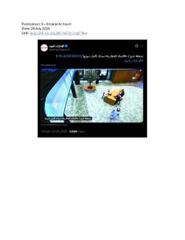 Publication: X – Emarat Al Youm Date: 28 July 2025 Link: ﺎﮭﻧوﯾد لﻣﺎﻛ دادﺳ «ﺔﯾرﺎﻘﻌﻟا دﺎﺣﺗﻻا» ـﻟ ﺢﯾﺗﺗ ﺔﻘﻔﺻ