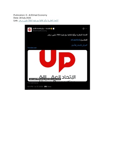 Publication: X – Al Etihad Economy Date: 28 July 2025 Link: مھرد نوﯾﻠﻣ 700 ﺔﻣﯾﻘﺑ ﻊﯾﺑ ﺔﯾﻗﺎﻔﺗا ﻊّﻗوﺗ ﺔﯾرﺎﻘﻌﻟا دﺎﺣﺗﻻا