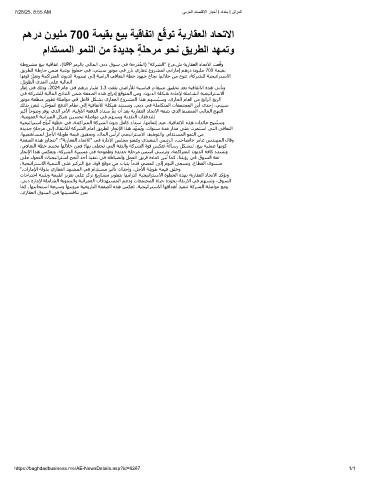رﺎطإ ﻲﻓ ﻚﻟذو ،2024 مﺎﻋ ﻲﻓ ﻢھرد رﺎﯿﻠﻣ 1.3 ﺖﻐﻠﺑ ﻲﺿارﻸﻟ ﺔﯿﺳﺎﯿﻗ ٍتﺎﻌﯿﺒﻣ ﻖﯿﻘﺤﺗ ﺪﻌﺑ ﺔﯿﻗﺎﻔﺗﻻا هﺬھ ﻲﺗﺄﺗو
