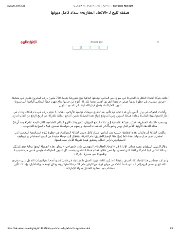 7/28/25, 8:55 AM ﺎﮭﻧوﯾد لﻣﺎﻛ دادﺳ «ﺔﯾرﺎﻘﻌﻟا دﺎﺣﺗﻻا» ـﻟ ﺢﯾﺗﺗ ﺔﻘﻔﺻ - Bahrainso Highlight