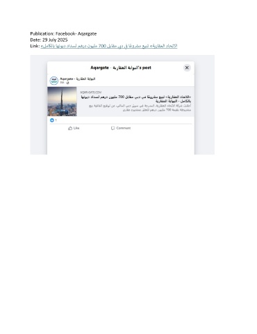 Publication: Facebook- Aqargate Date: 29 July 2025 ن ً ر Link: «لماكلاب اهنويد دادسل مهرد نويلم 700 لباقم بد ف اعوشم عيبت »ةيراقعلا داحتلاا ي ي