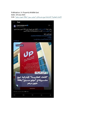 Publication: X- Property Middle East Date: 29 July 2025 ن ً ر Link: " مهرد نويلم 700ـب "تيس روتوم" ف اعوشم عيبت ةيتاراملإا "ةيراقعلا داحتلاا ي ي