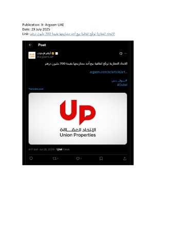 Publication: X- Argaam UAE Date: 29 July 2025 ّ Link: مهرد نويلم 700 ةميقب اهعيراشم دحأ عيب ةيقافتا عقوت ةيراقعلا داحتلاا