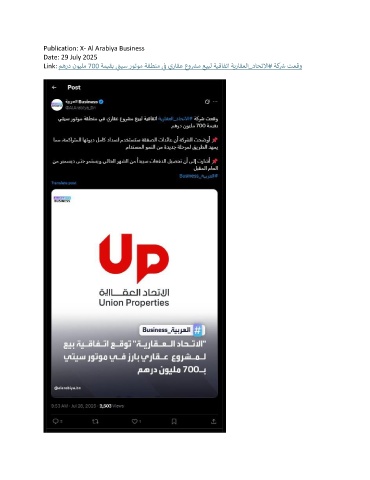 Publication: X- Al Arabiya Business Date: 29 July 2025 ن ر ر Link: مهرد نويلم 700 ةميقب تيس روتوم ةقطنم ف يراقع عوشم عيبل ةيقافتا ةيراقعلا_داحتلاا# ةكش تعقو ي ي