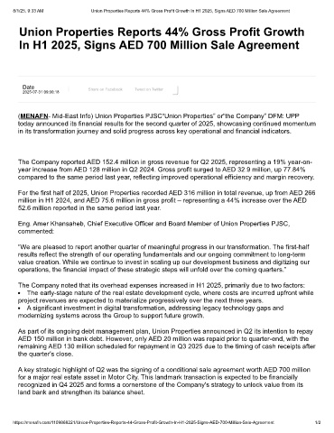 https://menafn.com/1109868221/Union-Properties-Reports-44-Gross-Profit-Growth-In-H1-2025-Signs-AED-700-Million-Sale-Agreement 1/2