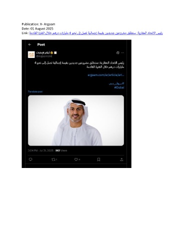 Publication: X- Argaam Date: 01 August 2025 ر Link: ةمداقلا ةتفلا للاخ مهرد تارايلم 4 وحن لىإ لصت ةيلامجإ ةميقب نيديدج يعوشم قلطنس :ةيراقعلا داحتلاا سيئر