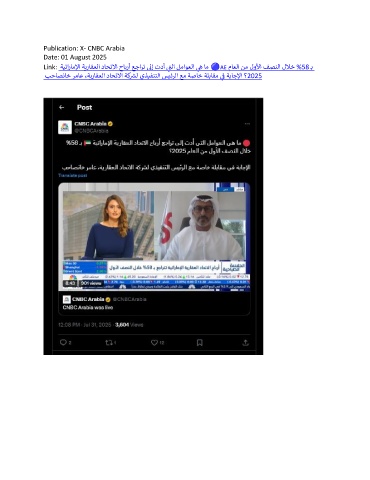 Publication: X- CNBC Arabia Date: 01 August 2025 Link: ةيتاراملإا ةيراقعلا داحتلاا حابرأ عجارت لىإ تدأ تلا لماوعلا ه ام ماعلا نم لولأا فصنلا للاخ %58 ب ي ي ر بحاصناخ رماع ،ةيراقعلا داحتلاا ةكشل يذيفنتلا سيئرلا عم ةصاخ ةلباقم ف ةباجلإا ؟2025 ي