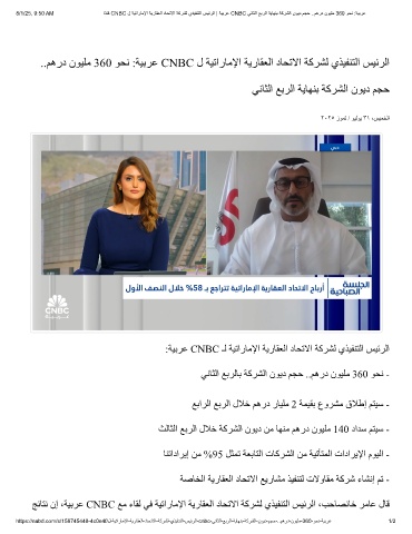 ..ﻢھرد نﻮﯿﻠﻣ 360 ﻮﺤﻧ :ﺔﯿﺑﺮﻋ CNBC ل ﺔﯿﺗارﺎﻣﻹا ﺔﯾرﺎﻘﻌﻟا دﺎﺤﺗﻻا ﺔﻛﺮﺸﻟ يﺬﯿﻔﻨﺘﻟا ﺲﯿﺋﺮﻟا