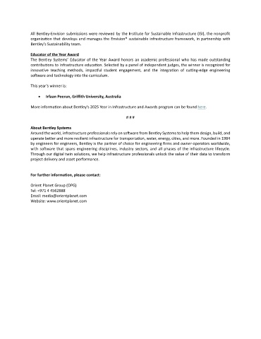 More informa�on about Bentley’s 2025 Year in Infrastructure and Awards program can be found here.