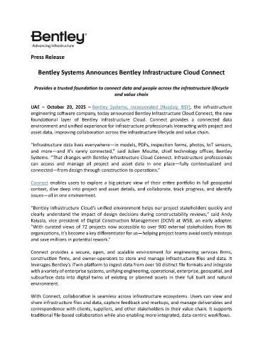 UAE – October 20, 2025 – Bentley Systems, Incorporated (Nasdaq: BSY), the infrastructure